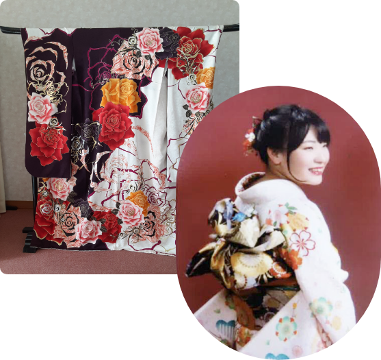 「七五三・成人など人生の節目の特別なお祝いの装いをすべての方にお届けしたい」という思いから、社会教育協会との連携により、経済的事情で着物を着る(親御様が子どもに着せる)のが困難な方でも、安心して成人の日を迎えられるようサポートいたします。